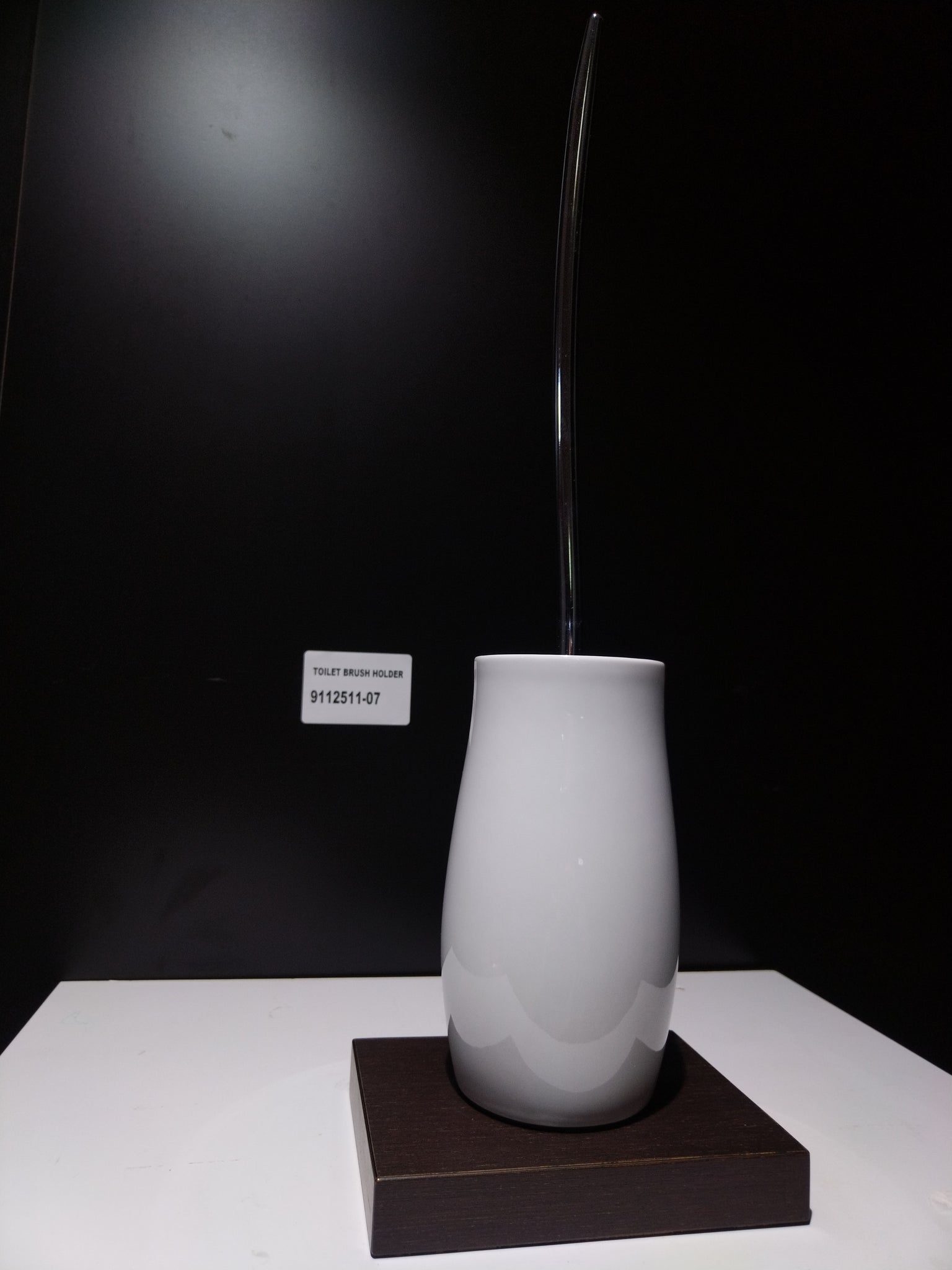 geesa haiku 9112511-07 wall-mounted toilet brush . wooden shelf, veneered; brush flask white, ceramic; brush on a metal handle with synthetic bristles. size 170x130x505 mm. chrome/wood veneer/white ceramics.